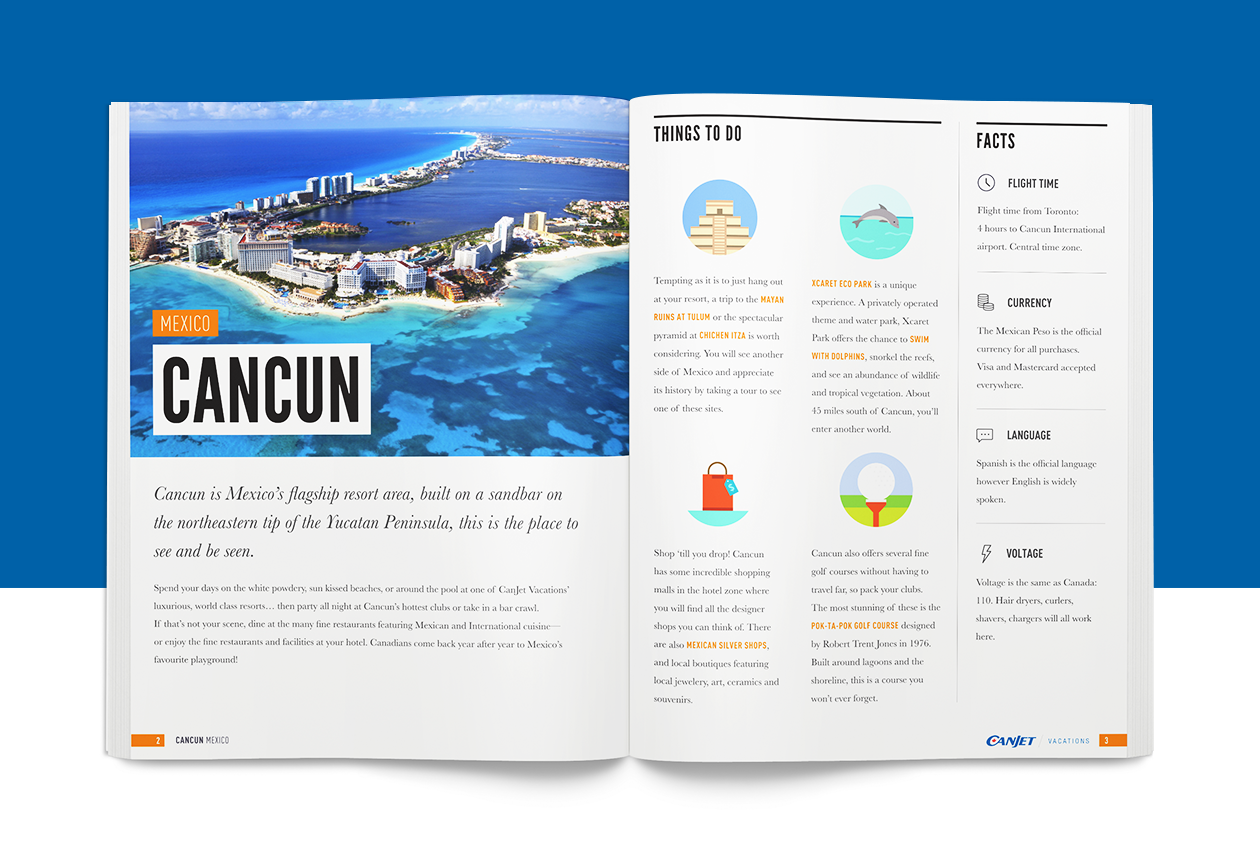 In 2014 I was given the task of launching CanJet Vacations with Konrad Group in the North American market in a way that stood out. Throughout the course of this engagement, I led a multi-functional team of marketers, designers and developers to deliver this large-scale, omnichannel project (web, mobile, digital, print collateral and customer experience) on time and on budget.
